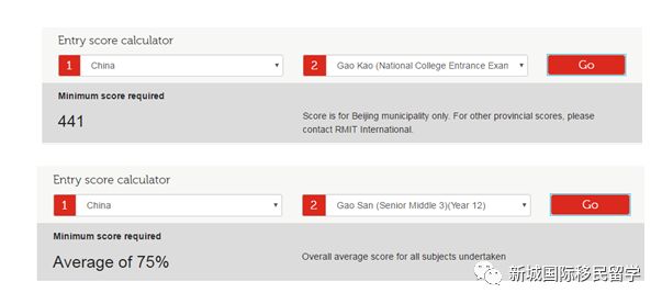 RMIT可以用高考成绩申请,也可以用高中的成绩申请。其中高考入学成绩因省份而异,但基本接近国内一本线。