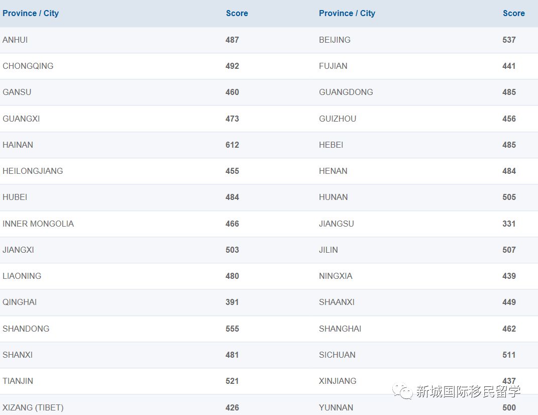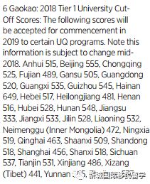 西澳大学的高考成绩要求与UNSW相似,也是按照各省份的成绩比例来划定分数线。