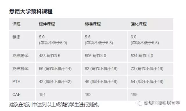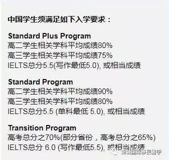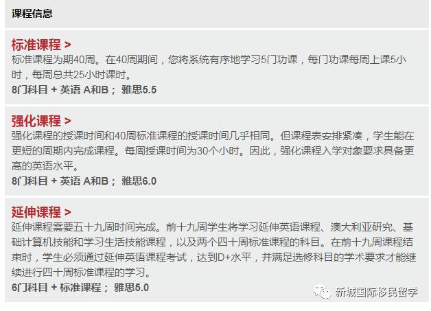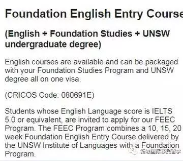 可以看到 英文的最低要求为5.5,未达到最低要求的一样也可以就读语言课程。而新南威尔士提供一个直升本科的课程的打包课程,英文加预科直升本科,为学生节省了不少时间。